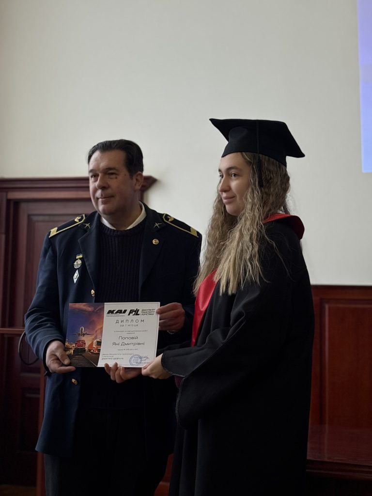 Дмитро Шевчук, декан Факультету транспорту і логістики КАІ, здійснив вручення дипломів випускникам освітньо-професійних програм «Організація перевезень та управління на транспорті (повітряному)» та «Мультимодальний транспорт і логістика».