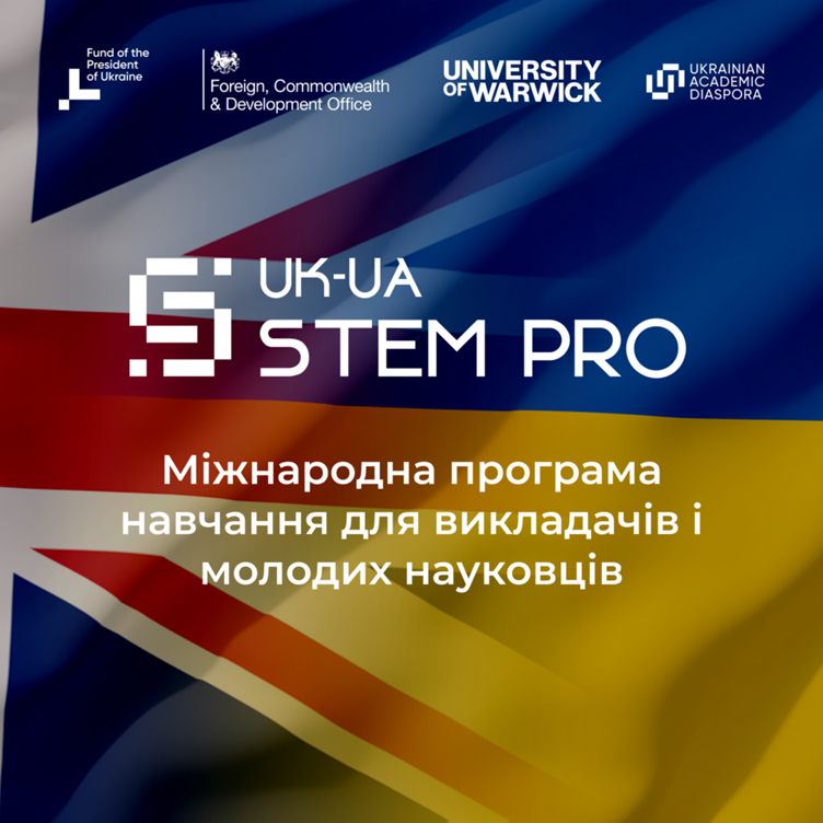 Двоє науковців нашого факультету – Стенякін Іван та Щеховська Лариса пройшли відбір до участі в міжнародній програмі професійного розвитку UK–UA STEM PRO, ініційованій Фондом Президента України з підтримки освіти, науки та спорту у партнерстві з University of Warwick та за підтримки UK–Ukraine Academic Diaspora Network і Міністерства закордонних справ Великої Британії.